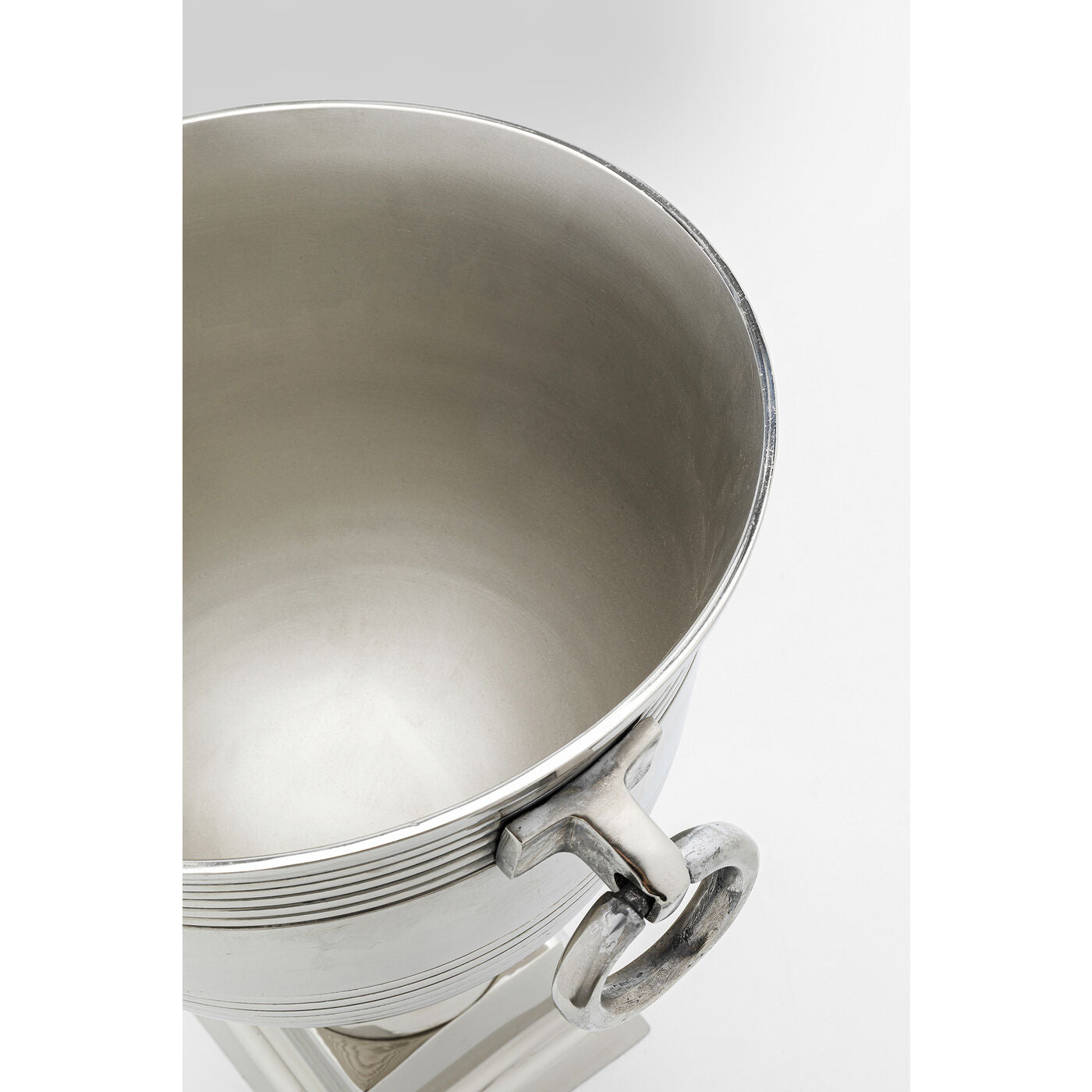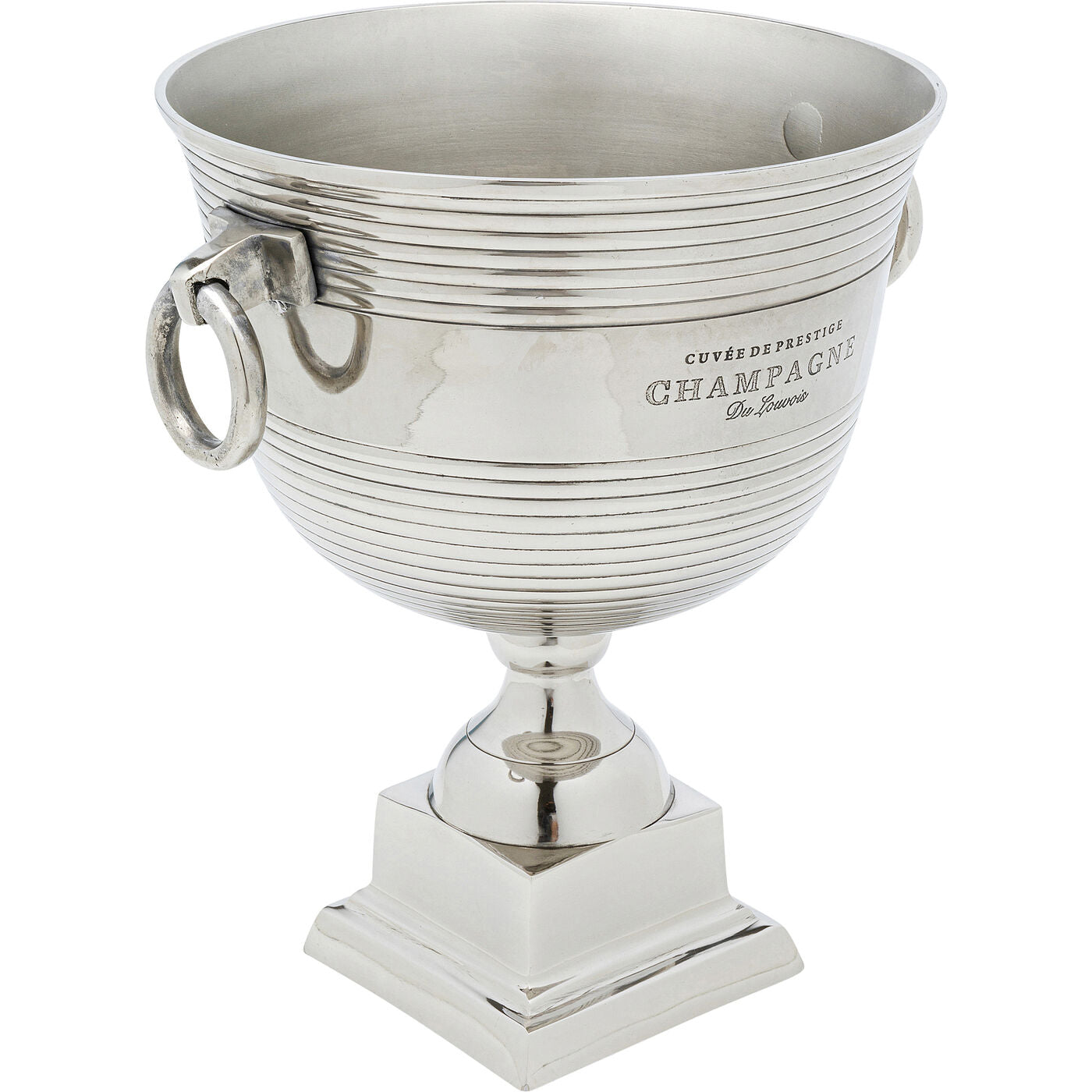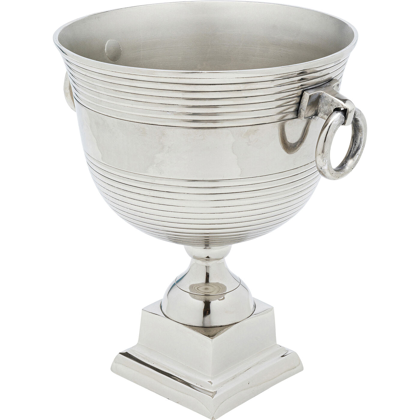 Enjoy your champagne like the champions! This silver wine cooler makes it possible. The handcrafted finish speaks for the high quality just like the material: nickel-plated aluminium. This unique piece makes everyone a trophy winner. To unfold its full glory, we recommend placing the table accessory on a shelf or bar.