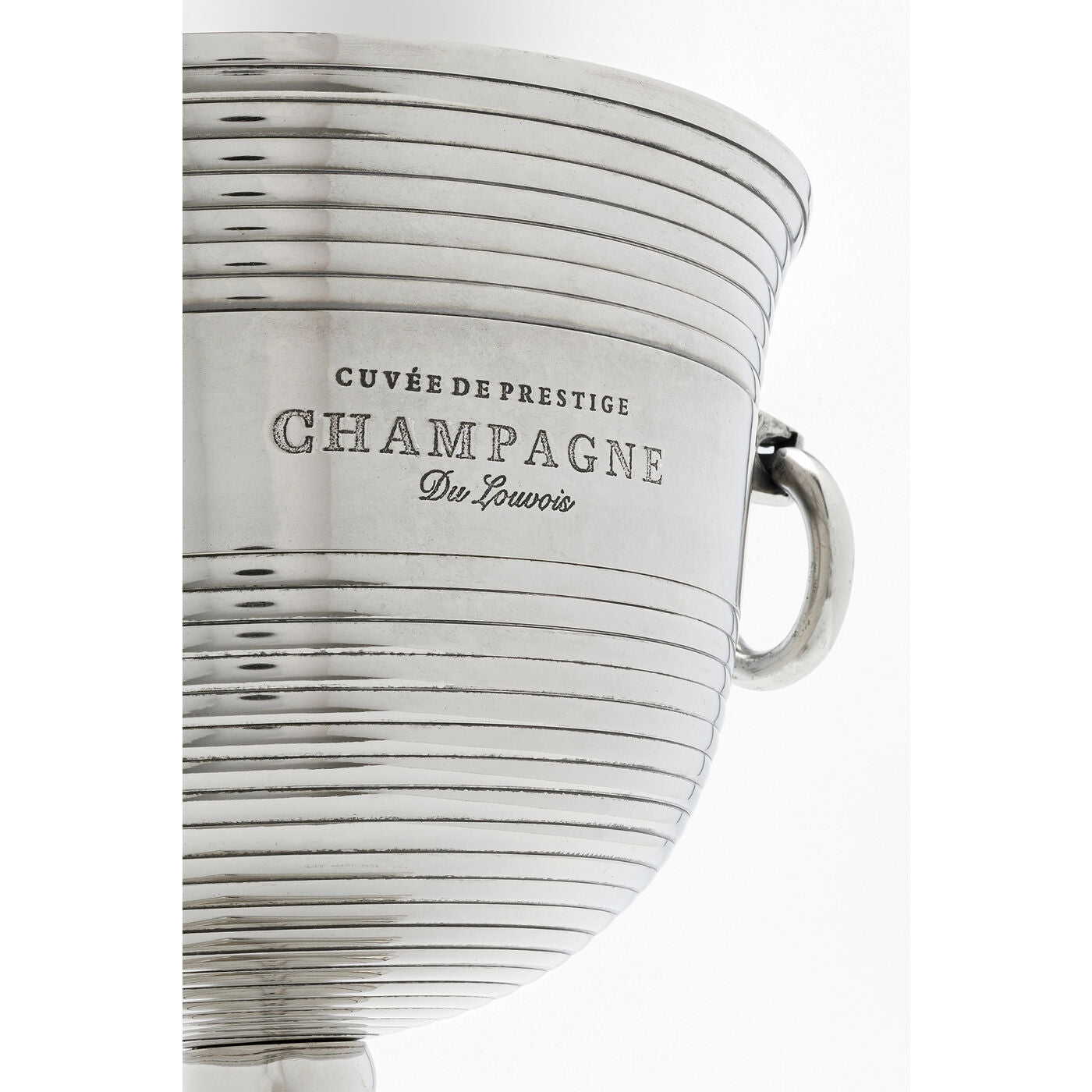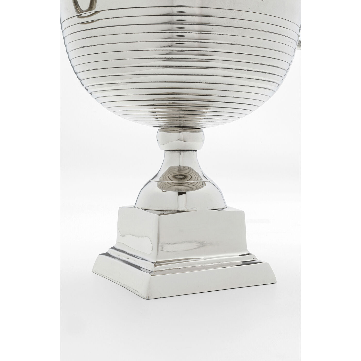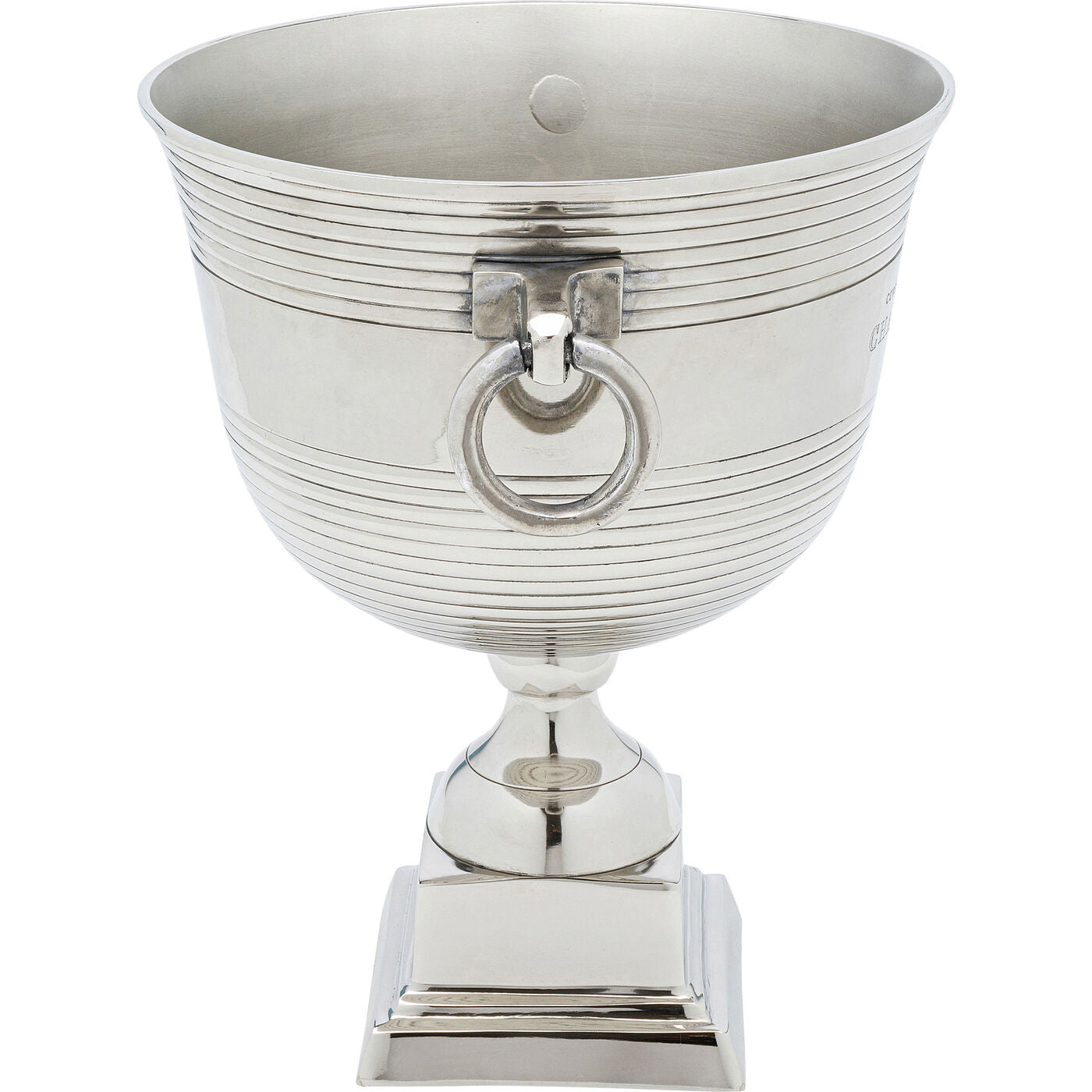 Enjoy your champagne like the champions! This silver wine cooler makes it possible. The handcrafted finish speaks for the high quality just like the material: nickel-plated aluminium. This unique piece makes everyone a trophy winner. To unfold its full glory, we recommend placing the table accessory on a shelf or bar.