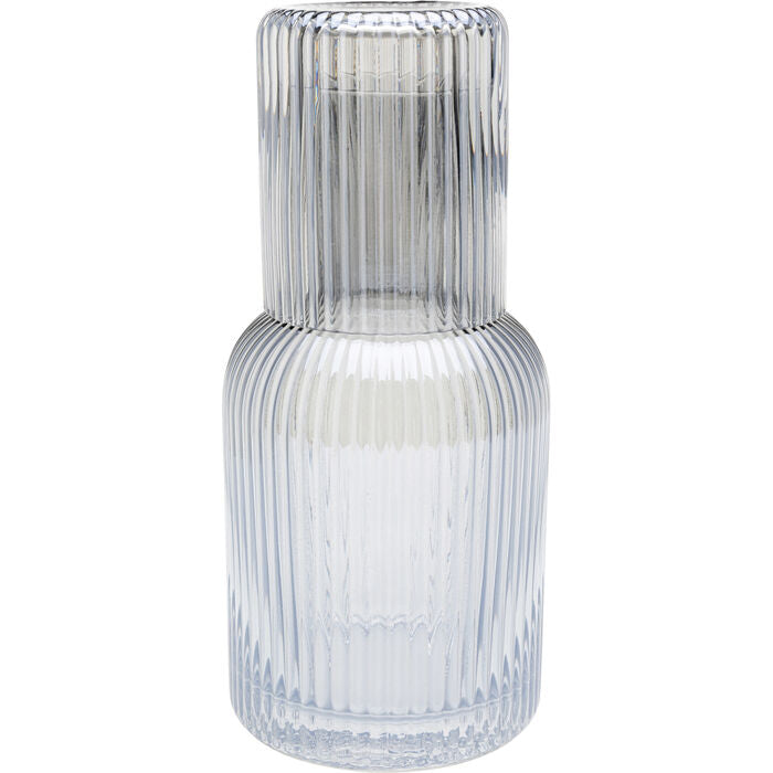 Timelessly beautiful and functional at the same time - this glass carafe brings pure elegance to the table. Made from clear glass with a slightly curved silhouette, it is a stylish companion for water, spritzers or homemade lemonade. A matching glass is included in the set, making the duo perfect for stylish refreshments. Whether on a wooden tray with colorful accessories or next to a vase of wild flowers - the set is a charming eye-catcher. Ideal for the kitchen, dining table or home bar, it combines design with practical everyday practicality.