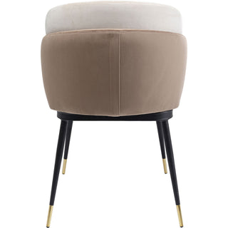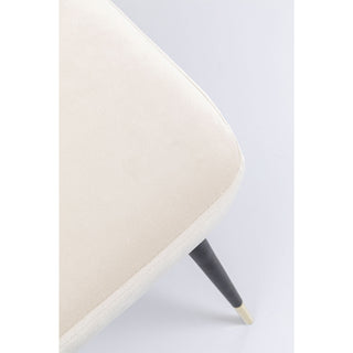 You can sit comfortably on this stylish velvet chair, even if the dinner party or meeting lasts a little longer. The shell shape and quilting make this designer chair a sensational centrepiece in the living room, dining room or study. The delicate natural tones of the cover in combination with the elegant, slightly flared legs in black and gold lacquered steel have a subtly glamorous.