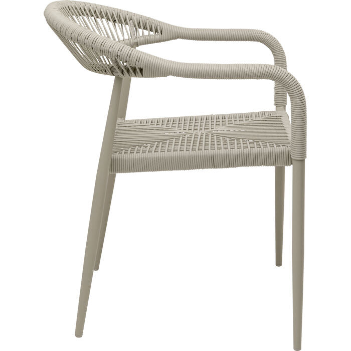 The Palma armchair exudes Mediterranean flair. This is due to the chic design with the wicker backrest and seat in a natural color. With its aluminum frame, the wicker chair not only impresses with its dimensional stability. Weighing just 3.3 kg, the armchair is also easy to move. Its shape and seat height of 47 cm promise pleasant seating comfort. At 65 cm, the armrests are high enough to fit under most tables. The modern design of the chair makes it an attractive seating option not only for the garden and balcony. This timelessly beautiful armchair also cuts a fine figure indoors, for example at the dining table.