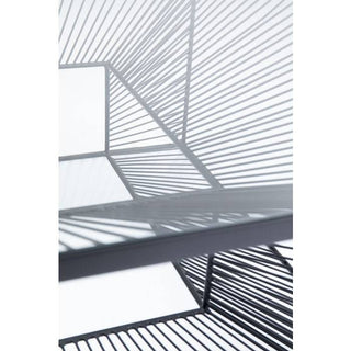 This graphic, reduced coffee table with its clear glass top is a design highlight: the handmade steel wire frame creates stunning visual effects and adds something very modern to every furnishing environment.