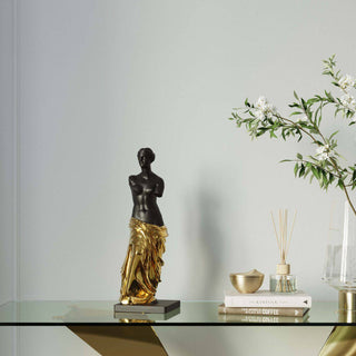- Roman-style statue with base in black and gold, 48 x 13. 5 x 13 cm (H/W/D)