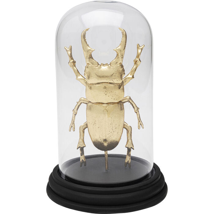 A shimmering Hercules beetle sits enthroned beneath the clear bell, as if taken from a stylish natural history collection. The shiny gold shell contrasts effectively with the deep black base and magically attracts the eye. The protective glass bell protects against dust and makes care a breeze. Placed between vases and art books on the sideboard or displayed solo on a shelf, the object adds a touch of mystery and gives modern and classic living spaces a hint of a cabinet of curiosities. It also makes a charming gift for collectors, design enthusiasts, and nature lovers.