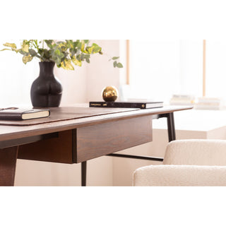 Material: Frame: Steel lacquered, Cowhide Covered leather, Tabletop: Medium density fibreboard (MDF) Lacquered, Drawer: Medium density fibreboard (MDF) Lacquered, Drawer frame: Medium density fibreboard (MDF) Veneered, 19 mm Thickness of panel, 100 kg Max. load-carrying capacity, Hand-crafted, Each peace unique, Knocked-down, Maintenance and Cleaning: Art. No. 25002 Furniture Cleaner