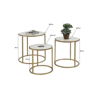 Material: Frame: Steel brass-plated, Tabletop: Marble, Agate Stone, 1,50 cm Thickness of panel, 10 kg Max. load-carrying capacity, 34,50 x 32 cm Ø Small, 40,50 x 37 cm Ø Medium, 45,50 x 43 cm Ø Big