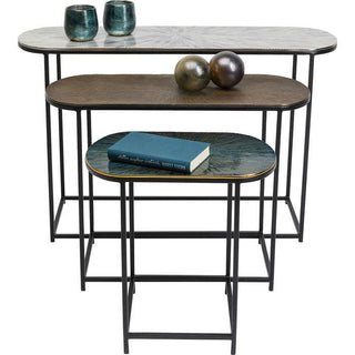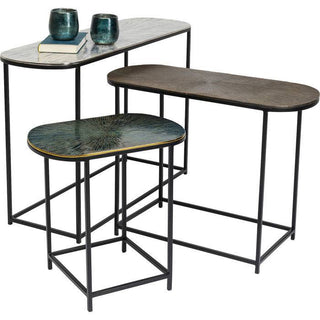 - Set Of Three Oval,Black Side Tables With Artistically Coloured Enamel-Look Table Tops