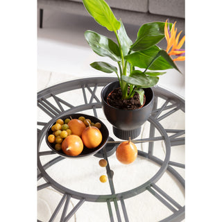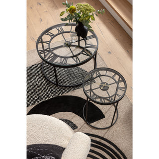 This Modern,Rustic Side Table In Black Has A Diameter Of 76 Cm And Offers Plenty Of Space On Its Glass Table Top To Place Drinks And Snacks. Under The Glass Top You Will Find A Clock With A High-Quality Quartz Movement. The Integrated Round Clock With Its Roman Numerals Makes The Glass Table A Very Fancy Eye-Catcher. The Clock Is Operated With An Aa Lr6 1.5V Mignon Battery (Not Included).