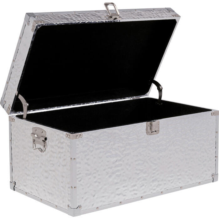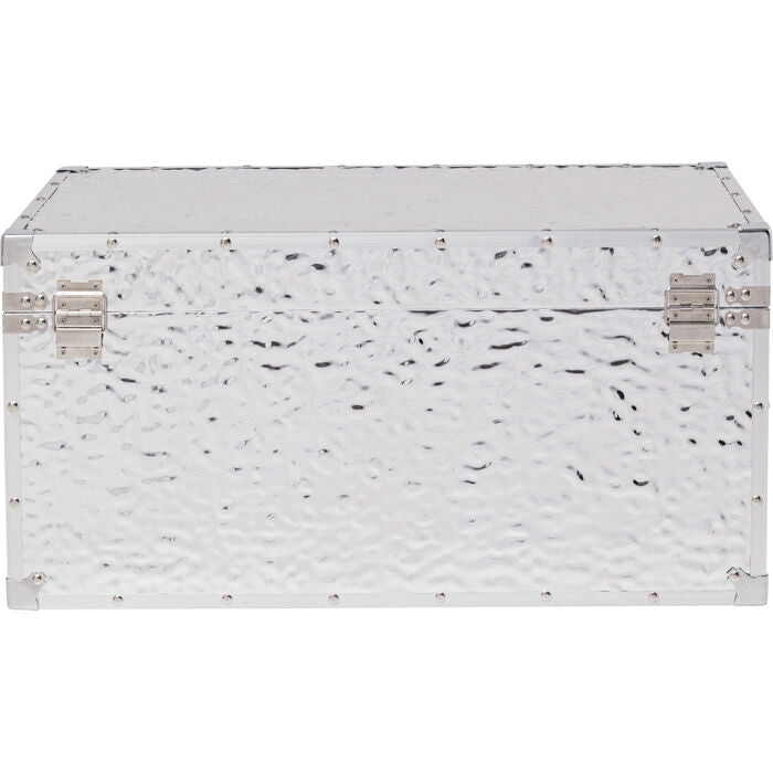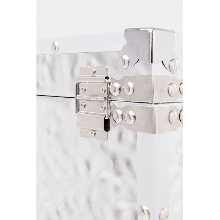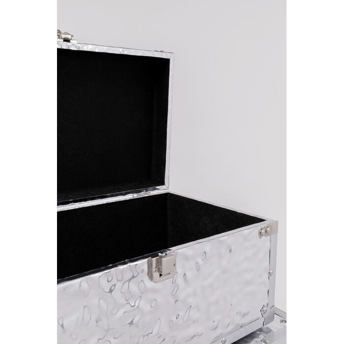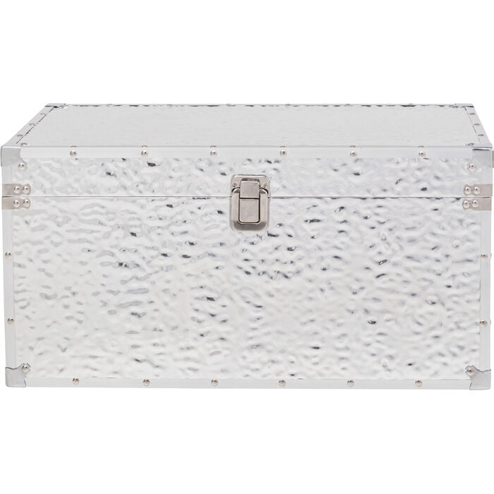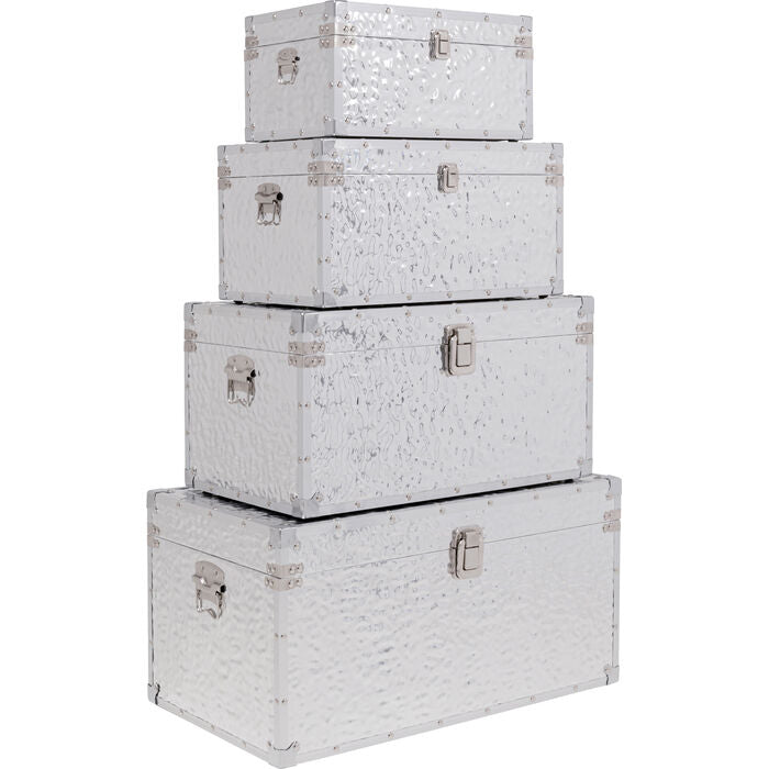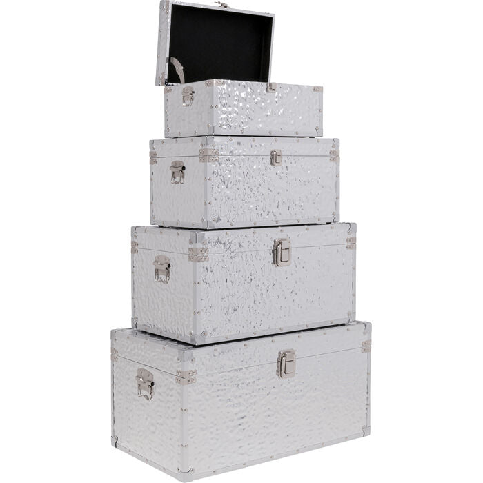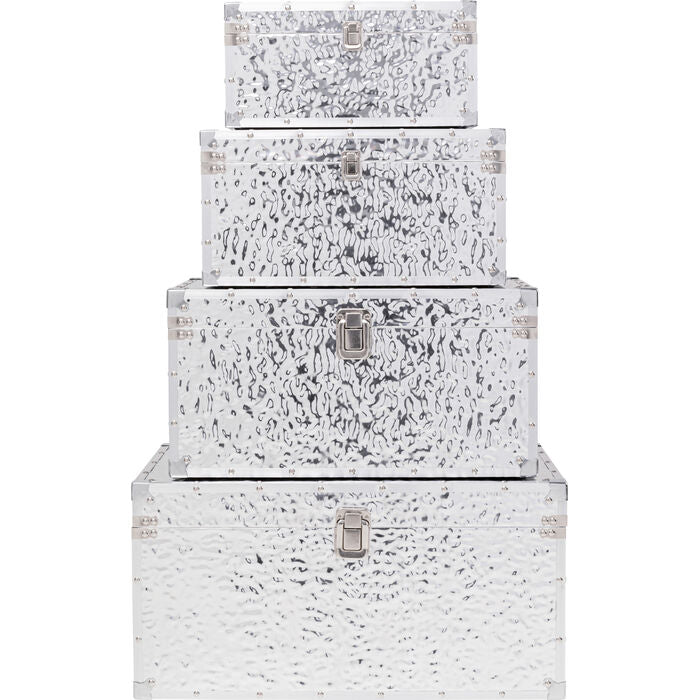 Functionality meets stylish design! This set of four boxes transforms everyday storage into a stylish design statement. The shiny silver surface with three-dimensional structure creates a modern, luxurious look, while the robust steel stands for durability. Perfect for elegantly storing cables, documents or personal treasures - whether in the office, living room or bedroom. Particularly effective in combination with glass and metal elements or as a contrast to warm wood tones in an industrial or contemporary style.