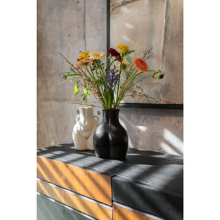 Touching allowed - this vase in the shape of a sculpture tempts you to touch it, it is so round and harmoniously shaped. It has been created to be completely compelling as a decorative object. Discover how a black flower vase can bring out the best in flowers of any colour. Or give Donna as a gift to all lovers of modern ceramics.