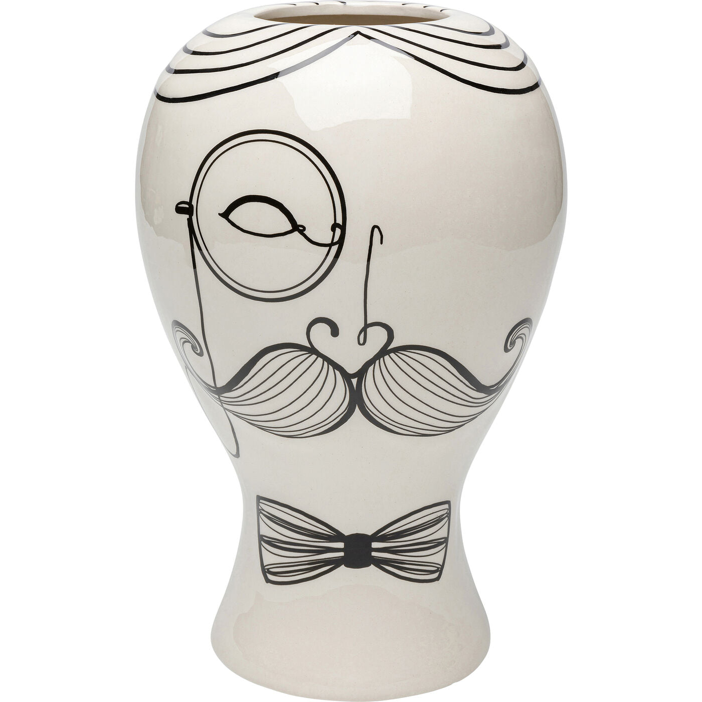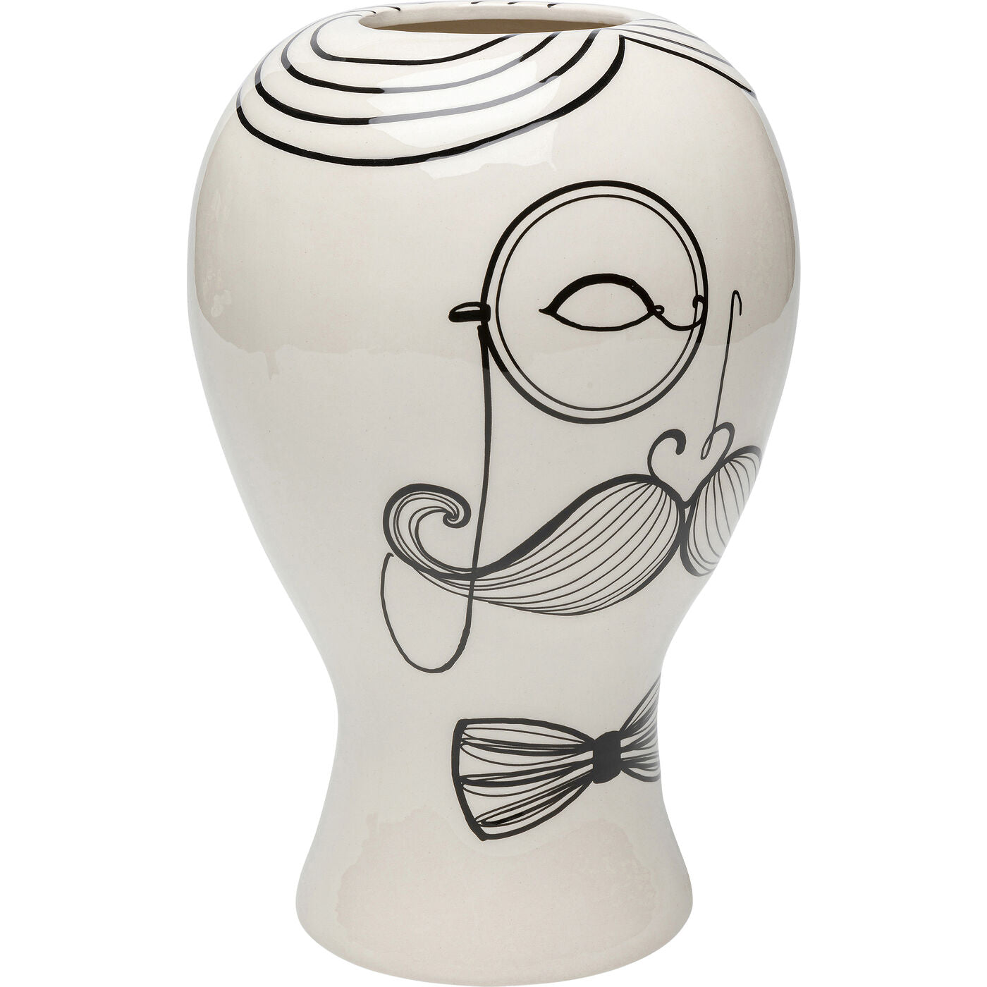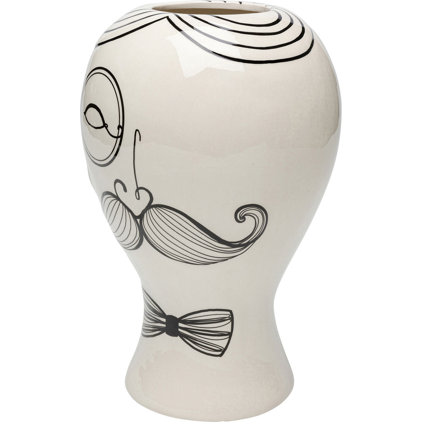 The Favola Men vase is an unusual and stylish piece that will immediately catch the eye in any room. Made of ceramics and with a glossy glaze, the vase is robust and durable. Each vase is unique due to the hand-painted black contours that represent the face and give the design that certain something. Whether as a decorative element on a side table, as a table decoration or as part of a flower arrangement - this ceramic vase fits perfectly with designer furniture and accessories, and will add a touch of exclusivity to any room.