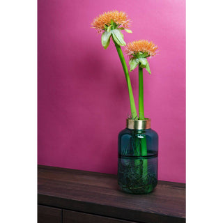 - Flower vase made of coloured glass with a gold-coloured setting in green - the colour of hope