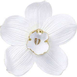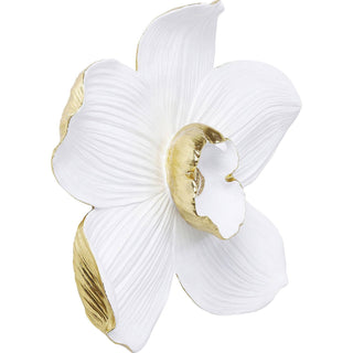 The almost lifelike orchid blossom is an enrichment for any room. Striking, unusual and elegant, the handmade and hand-painted blossom in elegant white skilfully sets the scene for any wall and will become an absolute centrepiece in your home. The floral wall decoration will also look good on a colourful wall - for example in rich green. Gold-coloured highlights provide pleasant contrasts that give the flower a vibrant expression.