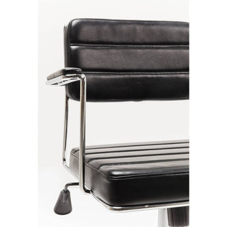 When space is at a premium in the home office, the best choice is a visually airy office chair. Like this swivel chair, which comes across as simple and yet chic with its classic retro look. The swivel function, tilt function and comfortable armrests are important for seating comfort and ergonomics. The black office swivel chair has all these advantages to offer. An additional, practical benefit: The coated material of the upholstery cover is an resistant surface and easy to clean and may be wiped damp.