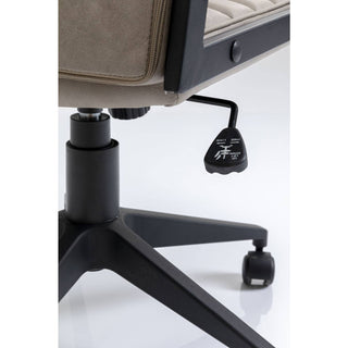 Please turn around! The upholstered Labora office swivel chair in grey impresses with its functions: it rotates, tilts and is height adjustable. In addition Labora offers an ergonomic backrest, a timelessly beautiful design and a hard-wearing cover in the vintage leather look. The resistance of the tilt mechanism of the backrest can be individually adjusted to your physical requirements. The stylish office favourite moves smoothly on five high-quality castors. This office chair makes work much more enjoyable! Labora is available in many variations from the shop.