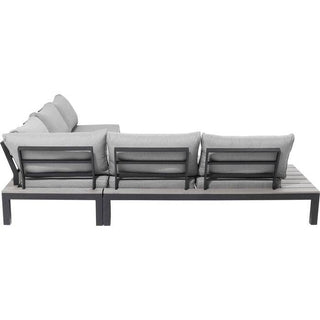 Material: Frame: Aluminum powder-coated, Tabletop: Polywood, Upholstery: 28 kg/m³ Polyurethane, Cover: 100 % Polyethylene, Cushion: With zipper, 15 mm Thickness of panel, 115 kg Max. load-carrying capacity per Seat, 181 kg Max. load-carrying capacity, splash-proof, Knocked-down, 40 cm Seat height, 30 x 76 x 76 cm Storage space Coffee Table, 63 x 246 x 246 cm Storage space, Outdoor furniture assortment,