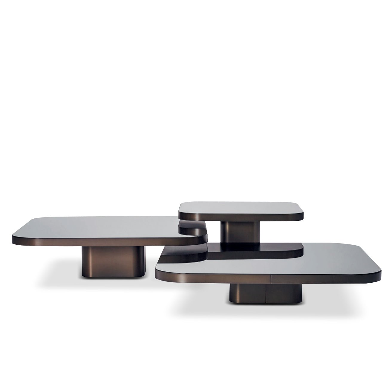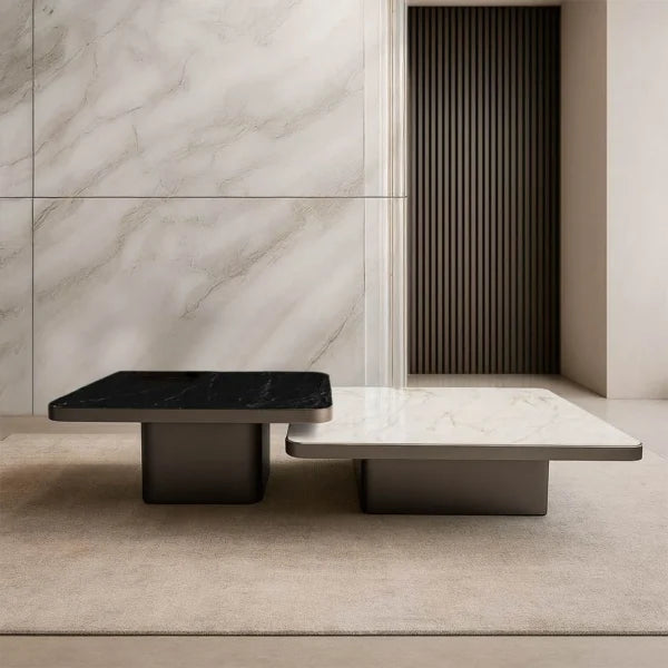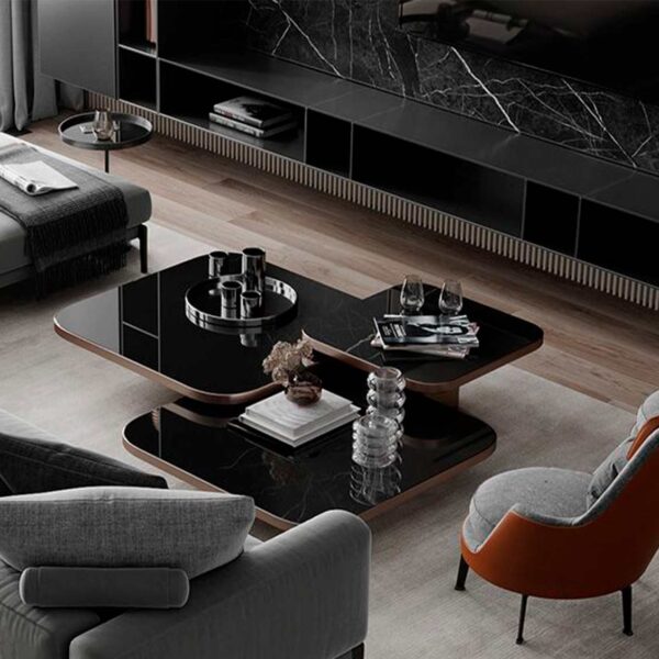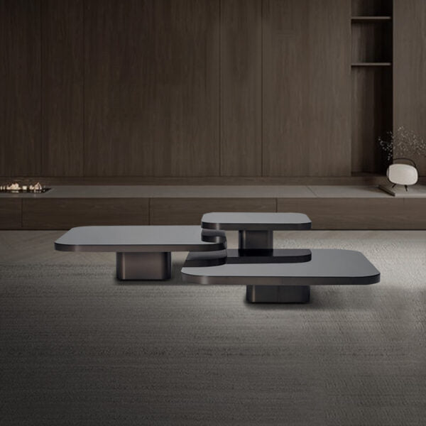 The Personally coffee table stands out as a one of a kind and adaptable design element. It consists of three pieces, each varying in size and height creating a captivating stepped effect that enhances the visual appeal of your living space. The table's top surface, crafted from stones seamlessly merges with the metal base. Moreover, Personally provides you with the option to customize the finishes according to your preferences enabling you to fashion an opulent ambiance.