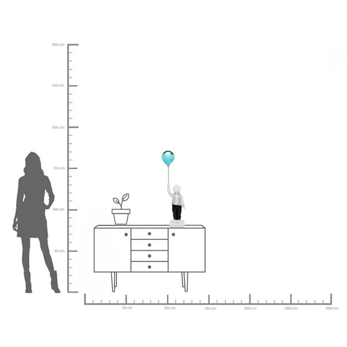 This enchanting decorative figurine radiates joie de vivre - a little boy with a bright blue balloon that will brighten up any room. The radiant hue of the balloon adds a lively accent and harmonizes perfectly with the elegant black and white tones of the figurine. Arranged on sideboards, chests of drawers or side tables, it brings a modern, cheerful flair to any interior. A must-have for creative spaces that love playful elegance.