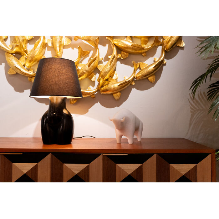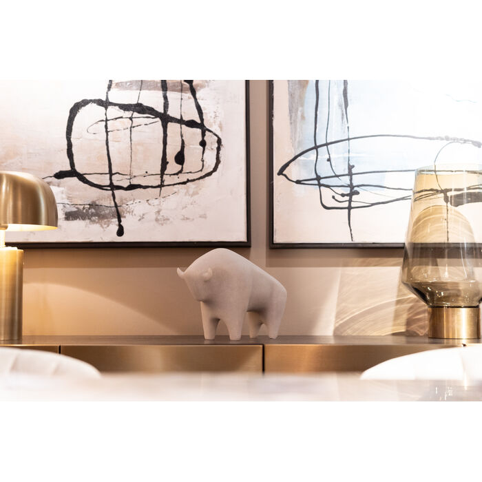 Powerful and charming at the same time - this decorative figurine brings an animal presence to a sideboard, shelf or coffee table. With its abstract design and soft design language, it interprets the powerful symbolism of the bull in a modern way. The soft surface provides an exciting contrast to the dynamic stance and lends the look a sculptural touch. Particularly effective in combination with metallic vases, monochrome pictures or as an eye-catcher in a minimalist ambience. Ideal for radiating strength and calm at the same time - a real style statement for anyone who loves the extraordinary.