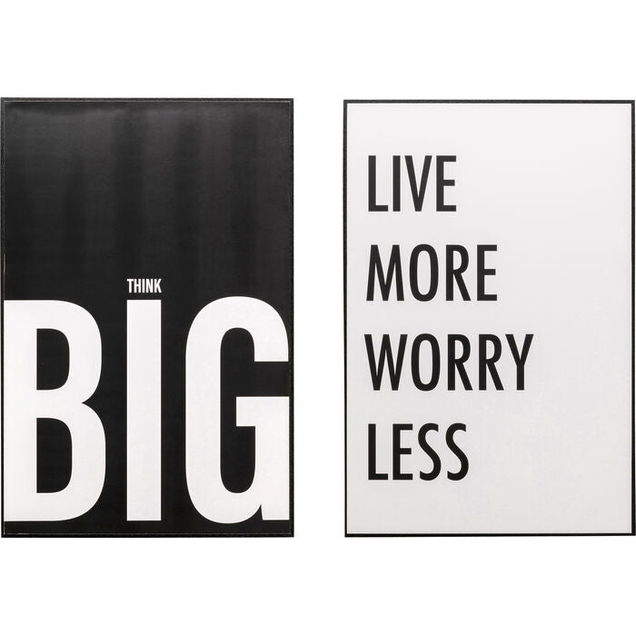Motivation for your wall: This set of two framed pictures combines stylish black and white typography with inspiring messages that bring positive energy and modern lightness into your home. Whether arranged individually or presented as a harmonious duo, the prints create accents that invite you to pause, reflect and smile. The black frame with subtle wood grain gives the ensemble an elegant yet cosy touch and makes it versatile for combining with both modern and classic interiors. Thanks to pre-mounted hooks on the back, wall decoration is quick and easy with no additional effort required.