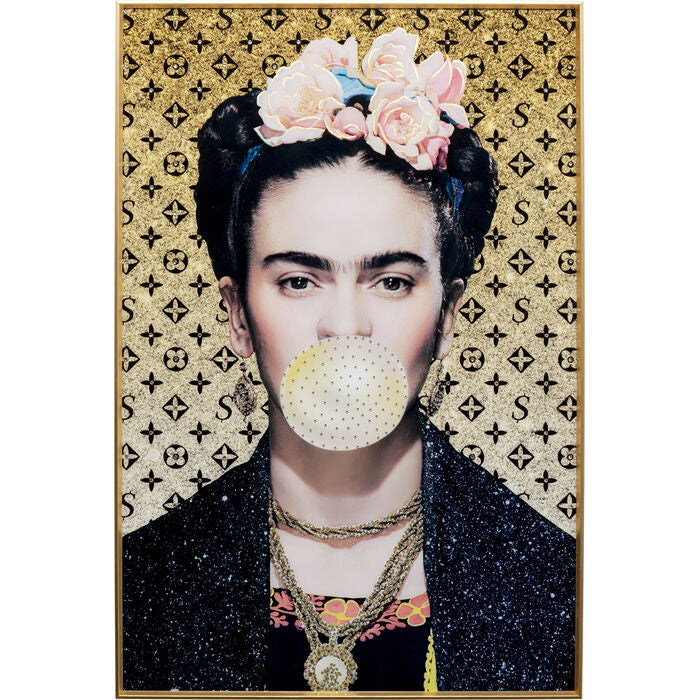 A true masterpiece for modern art lovers – this framed glass picture in black and gold makes a powerful statement with its iconic female motif. The stylized depiction of Frida Kahlo combines contemporary glamour with a touch of extravagance. Delicate rhinestones and the golden, delicate frame give the artwork a touch of class. Perfect in combination with minimalist furniture or as an extravagant addition to a glamorous interior, it brings vibrant colors and a very special aura to any room. A statement that transforms the wall into an eye-catcher.
