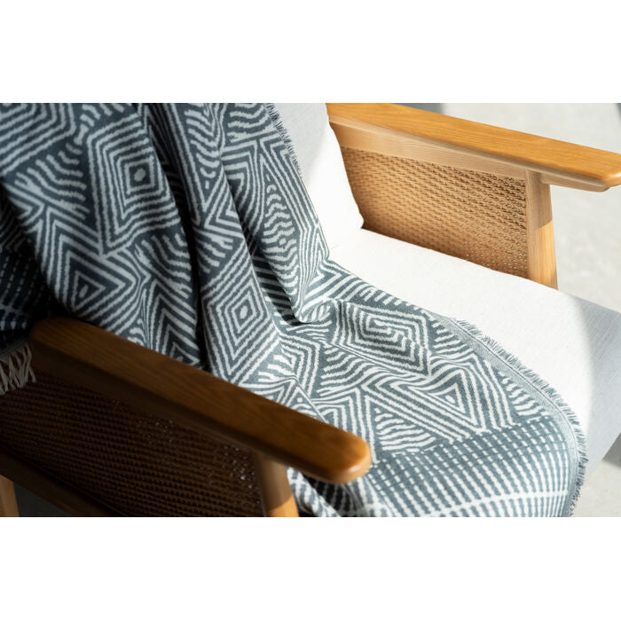 This stylish blanket creates a cozy living oasis with its playful pattern and fine fringed edges. It gives every room a warm atmosphere and invites you to relax. The easy-care material is particularly practical, remaining fresh and soft even with frequent use. Perfect as a colorful highlight on the sofa or as a decorative accent in the bedroom, the textile accessory can be wonderfully combined with modern or cozy furnishing styles. This turns any retreat into a feel-good place full of charm and comfort.
