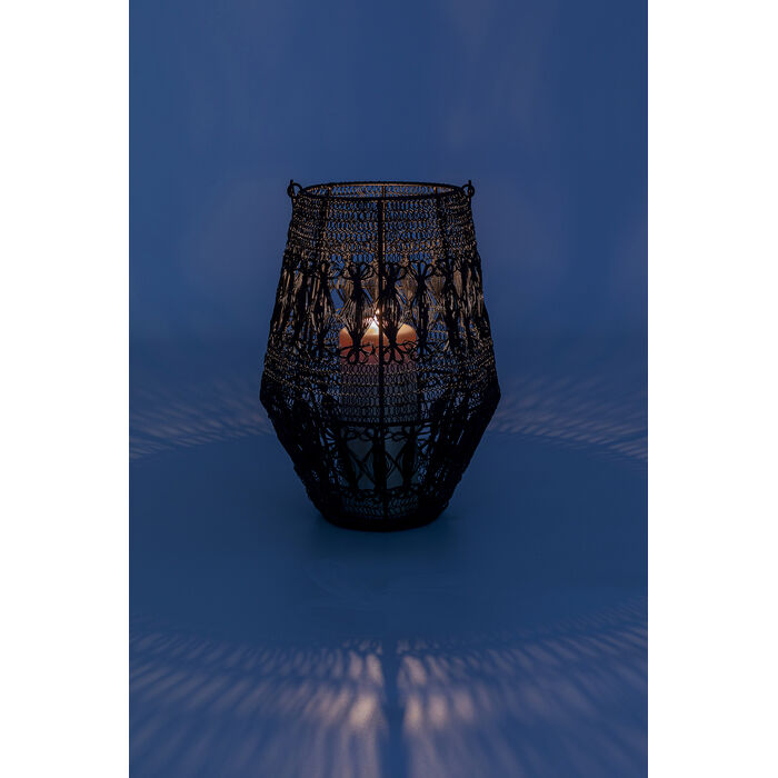This small lantern in black will introduce a touch of the Orient into any home. The delicate woven look gives it a unique, exotic charm. Place a tea light or a candle inside the lantern to create fascinating lighting effects that will make for a cosy and atmospheric ambience. It also works perfectly without lighting as a decorative object in the entrance hall or on the sideboard.