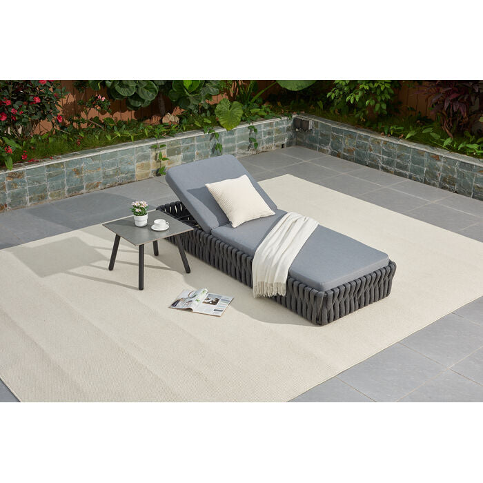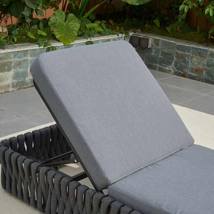 This adjustable lounger is the epitome of relaxation! Thanks to the flexibly adjustable headrest, you can create the perfect moment to relax, read or sunbathe. The soft upholstery in timeless gray provides comfort, while the stable, black frame with its robust construction ensures long-lasting enjoyment. An absolute highlight for any outdoor area, perfectly accentuated with a few cushions in neutral or bright shades