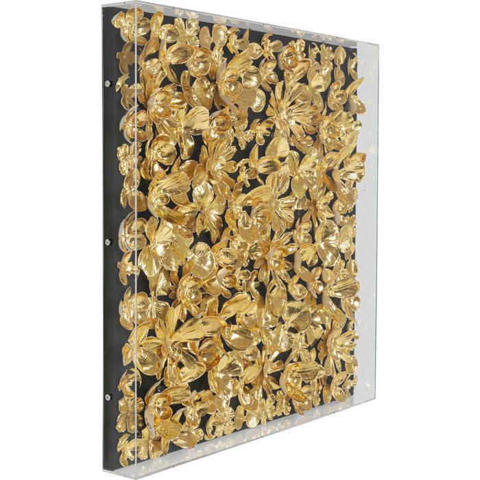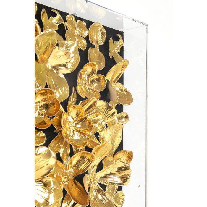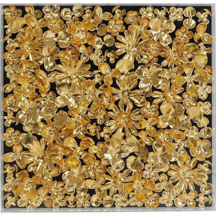 - Three-dimensional, square picture with a sea of golden flowers on a black background - handcrafted!