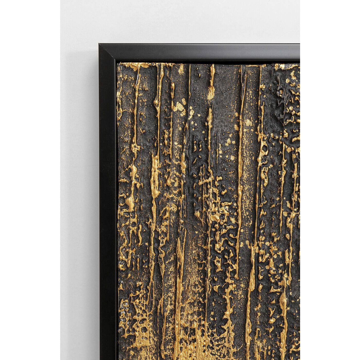 An art gallery at home? With this portrait-format canvas picture, creating gallery flair is child s play for you. The framed picture on the wall combines a black background with a golden, abstract image. The modern picture is not just a visual event, but also a tactile one. The manual craftsmanship is clearly demonstrated by the embossed surface structure. This acrylic painting is a unique piece and will radiate exactly that on your wall. As a wall accessory it will gleam with elegance above a sofa in the living room, an armchair in the hallway or above your desk in the home office.
