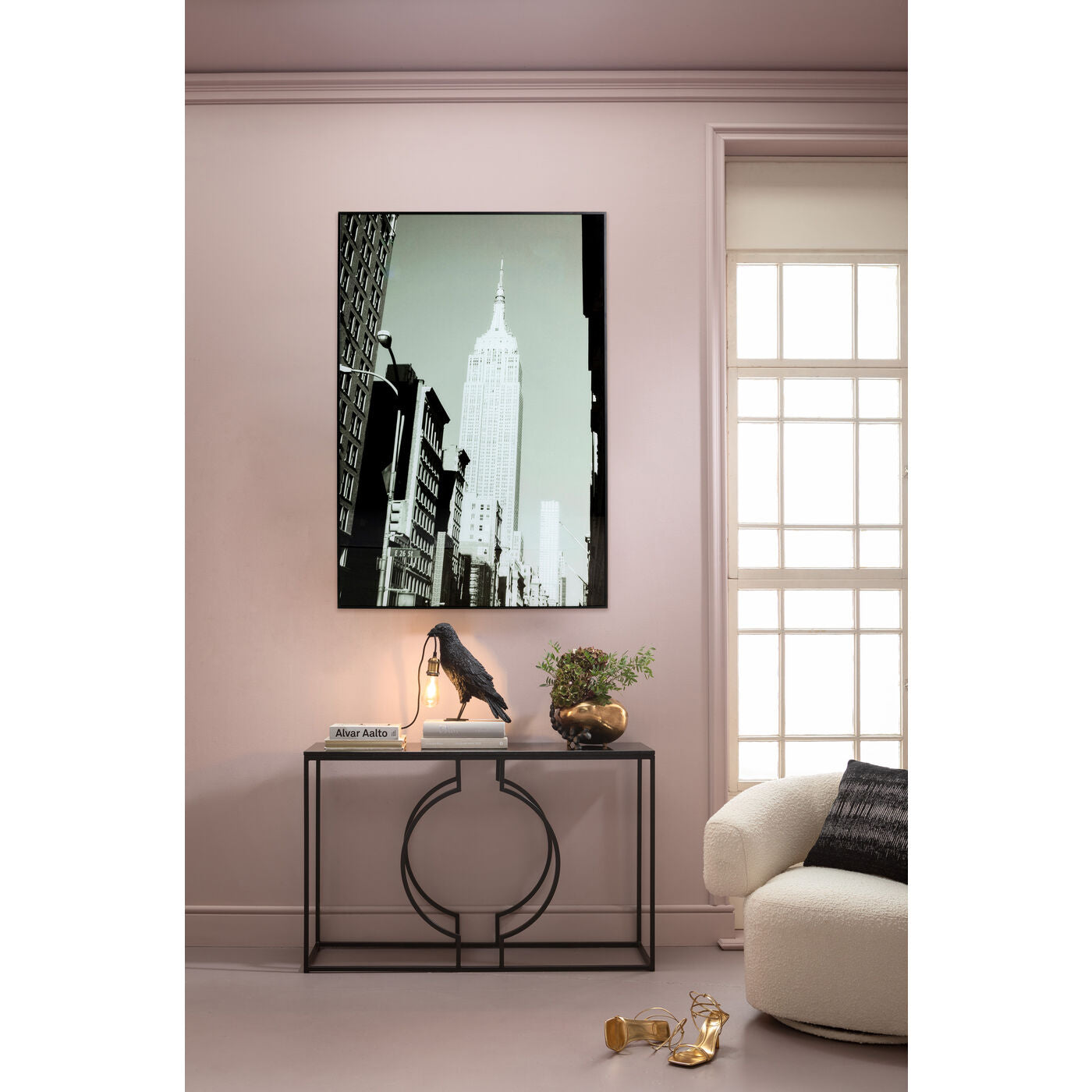 Bring your home to life with this stunning wall picture in the New York style! With a size of 150 x 100 x 3.5 cm, it is guaranteed to catch everyone s eye. The high-quality art paper and the ESG safety glass front ensure that the picture is protected and will give pleasure for a long time. The narrow frame made of lacquered aluminium gives the picture the finishing touch. Top tip for the picture wall: combine this black and white picture with other architectural motifs and hang it together with your favourite black and white images. The picture hooks on the back make it easy to mount.