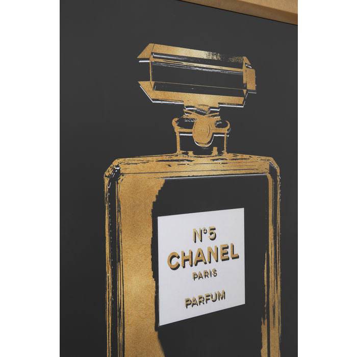 - The black background reinforces the elegant aura of the world-famous perfume.