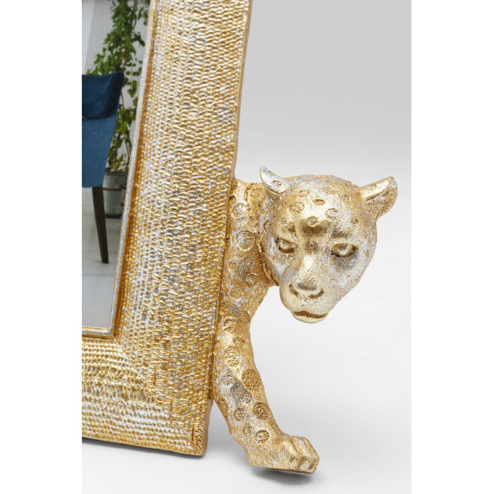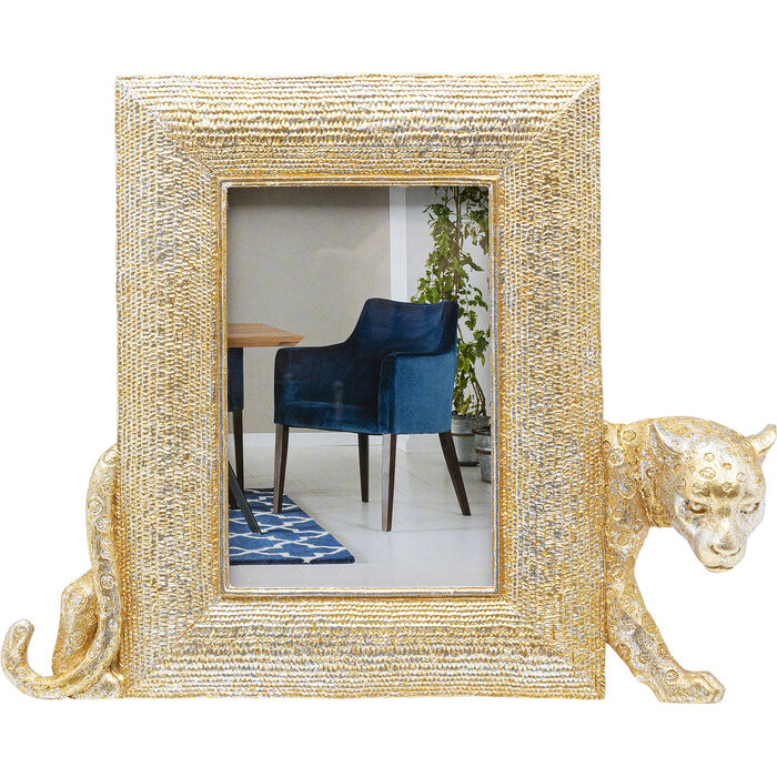 Bring a touch of safari glamour into your home with the ‘Leopard’ picture frame. The extravagant design in antique gold, enhanced by the detailed feline predator, gives photos an extraordinary stage. Whether on a console, on a shelf or as part of a creative picture wall - this accessory adds stylish accents with a touch of the wild. It looks particularly harmonious in combination with warm natural colours, dark wood or golden decorative elements. A real highlight for anyone who loves individuality and luxurious details.