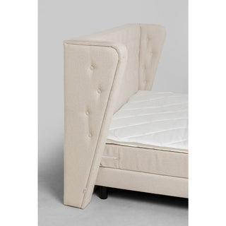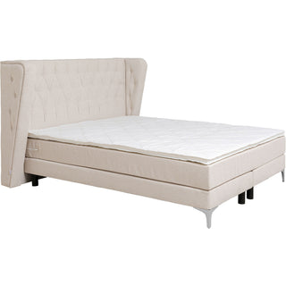 - Box spring bed sized 160x200 cm in beige with an elaborately crafted headboard