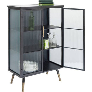 Coated steel and glass - these are the ingredients that define the casual look of this highboard. While the frame of this storage wonder is made of steel and is reminiscent of industrial design, the fronts and sides are made of grooved glass - this gives the cabinet a certain elegance and lightness. The La Gomera series, which includes various cabinets and chests of drawers, is characterised by a mix of steel and glass materials, distinctive lines and slightly flared feet.
