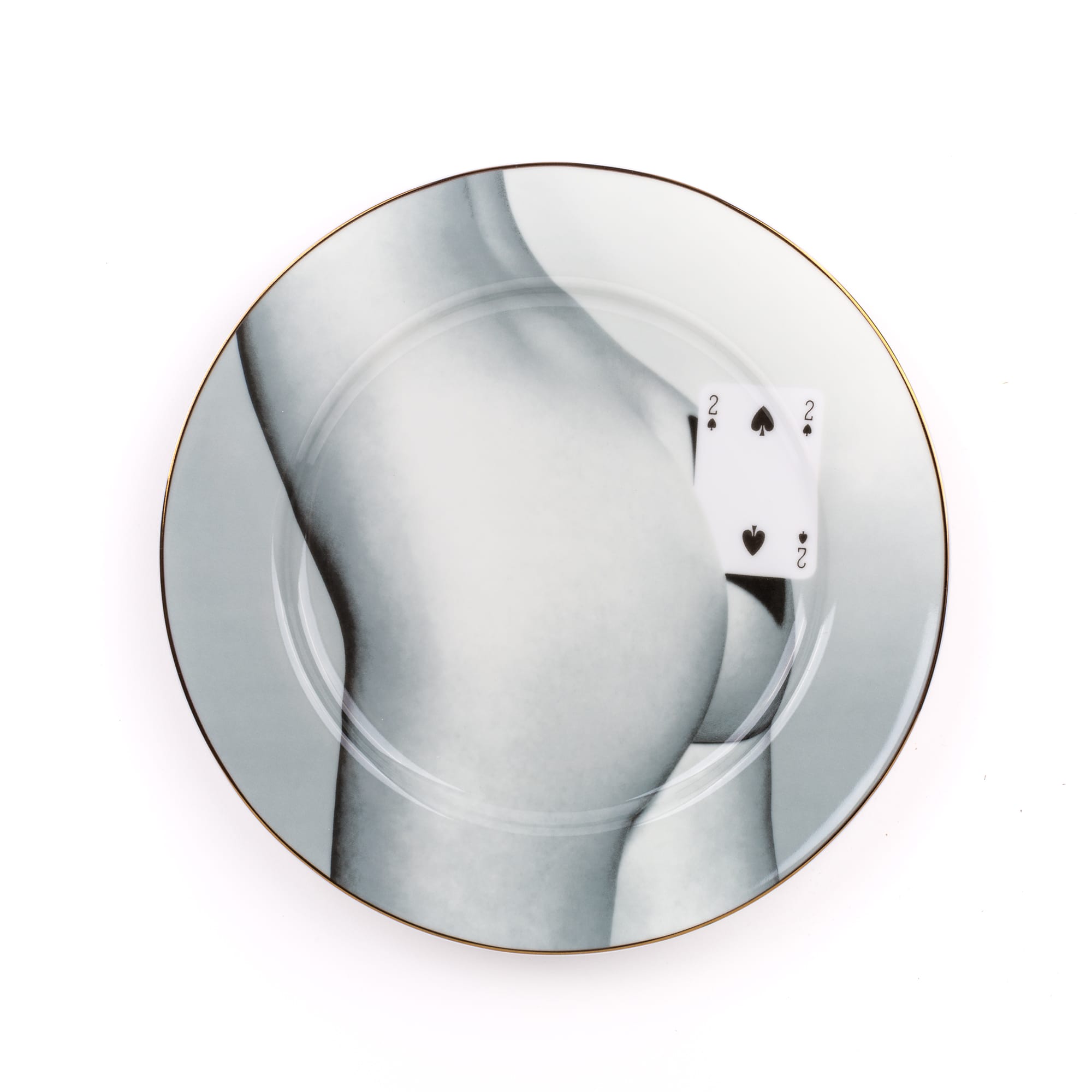 Porcelain Plate Two of Spades Gold Border