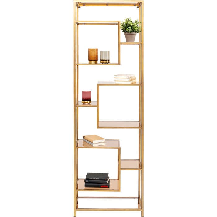 Open shelves are ideal furnishing partners: they help to keep things tidy, look light and, thanks to the large storage space on the shelves, offer plenty of room for decorations, boxes, baskets or vases - or, in the classic style, for books. This gold-coloured shelving unit from the Loft series will make an elegant appearance in any room. Its dimensions also make it practical for narrow and smaller rooms such as the hallway or niches, for example in the living room or bedroom, or in the home office area.