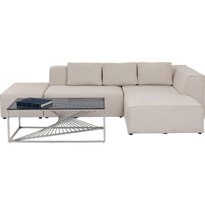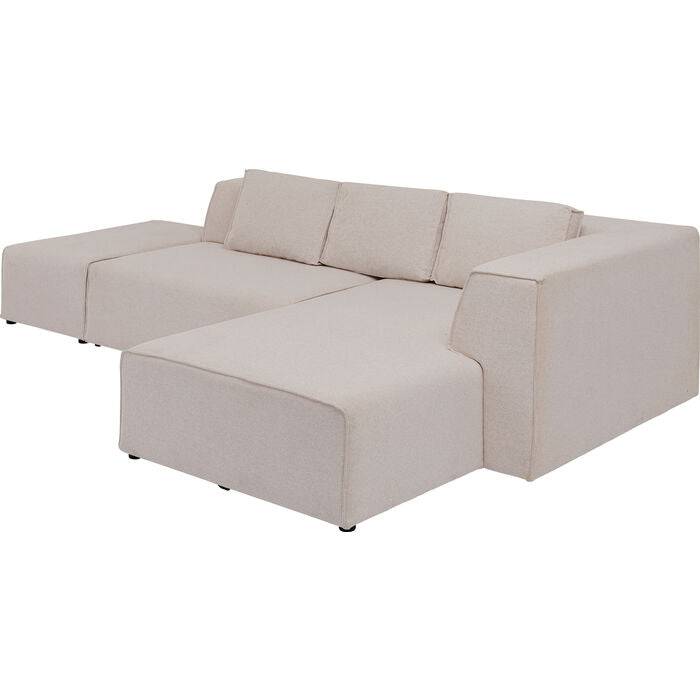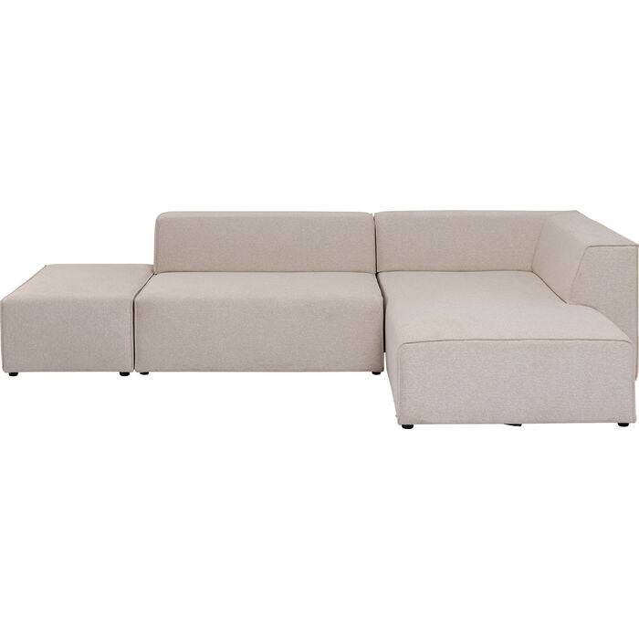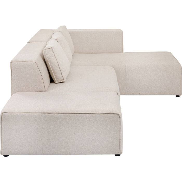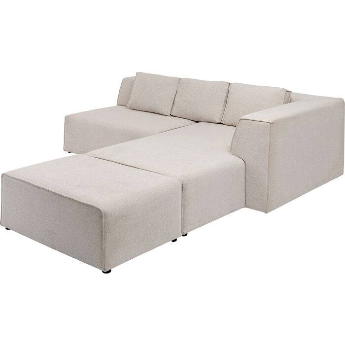 - Three-metre wide corner sofa with ottoman on the right in cream with comfortable upholstery in a classic modern style