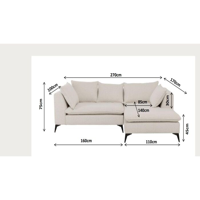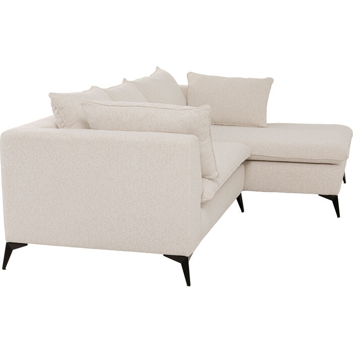 With its clear design language and mottled fabric cover in soft cream, this corner sofa attracts everyone s attention. The cozy L-shape offers plenty of space for relaxing hours, series evenings or social gatherings. Thanks to its simple elegance, it blends seamlessly into a wide variety of living styles - from minimalist to modern-boho. Particularly effective in combination with textured cushions, warm wood tones or metal accents. As a soloist in the room or casually placed in front of a large window, it brings style and homeliness together in a charming way. A sofa for arriving, lingering and feeling good.