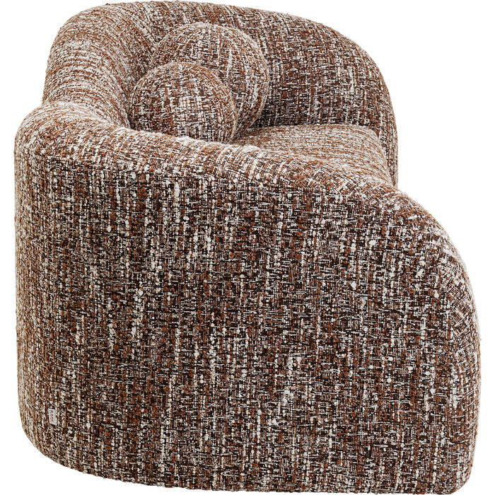 This 2-seater sofa combines stylish elegance with pure comfort. The soft, curved lines and the mottled cover in warm shades of brown give it a special depth and make it a real eye-catcher. Two round decorative cushions add playful accents and underline the harmonious design. Perfect for modern, natural or urban living concepts - combined with wooden furniture, it creates a cozy ambience, while metal and glass elements provide a sophisticated contrast. Whether as a lounge highlight or a cozy retreat, this sofa brings style and comfort into harmony.