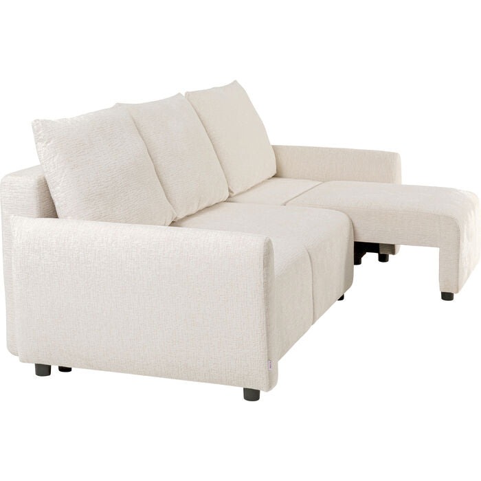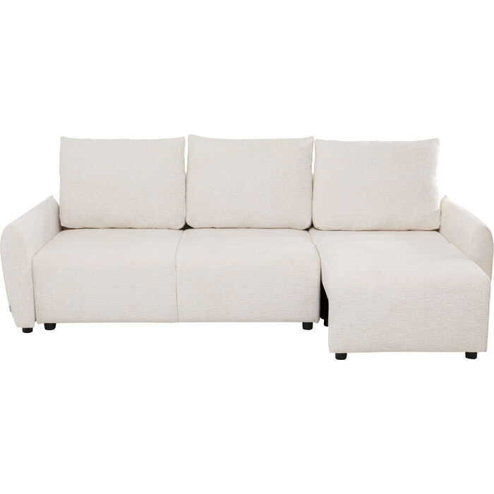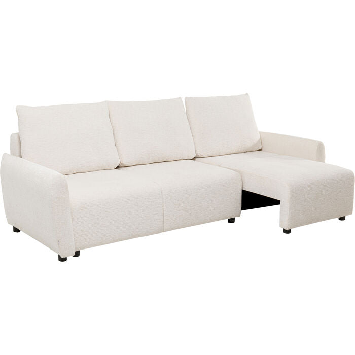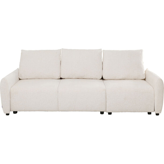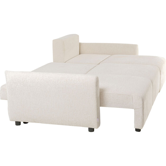 Simple, modern, and versatile—this fold-out sofa bed fits effortlessly into a wide variety of interior styles. The textured cover in soft cream white lends the design a subtle elegance while creating a pleasant, cozy feel. Thanks to its clean lines and harmonious color scheme, the sofa appears particularly light and inviting. The soft foam padding and two matching cushions offer a high level of comfort – both when sitting and sleeping. In just a few simple steps, you can create a generous sleeping area that invites you to relax or accommodate overnight guests. Combined with natural tones, light woods, or golden accessories, the sofa unfolds its full effect and stylishly rounds off any interior.