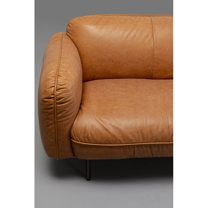 This modern two-seater sofa in brown leather is a lifelong companion. A leather sofa like the Calgary is not just a stylish piece of furniture for the living room but also an investment in quality and durability. Leather sofas generally last longer than fabric sofas and develop a unique patina over time. Calgary is a very comfortable two-seater sofa with comfortable seat cushions and backrests that ensure maximum comfort. The luxurious design in brown leather adds timeless elegance and style to any room. The sofa is upholstered with semi-aniline cowhide leather. Semi-aniline leather has a natural grain that is preserved by a light aniline dye. It is durable yet soft and supple.