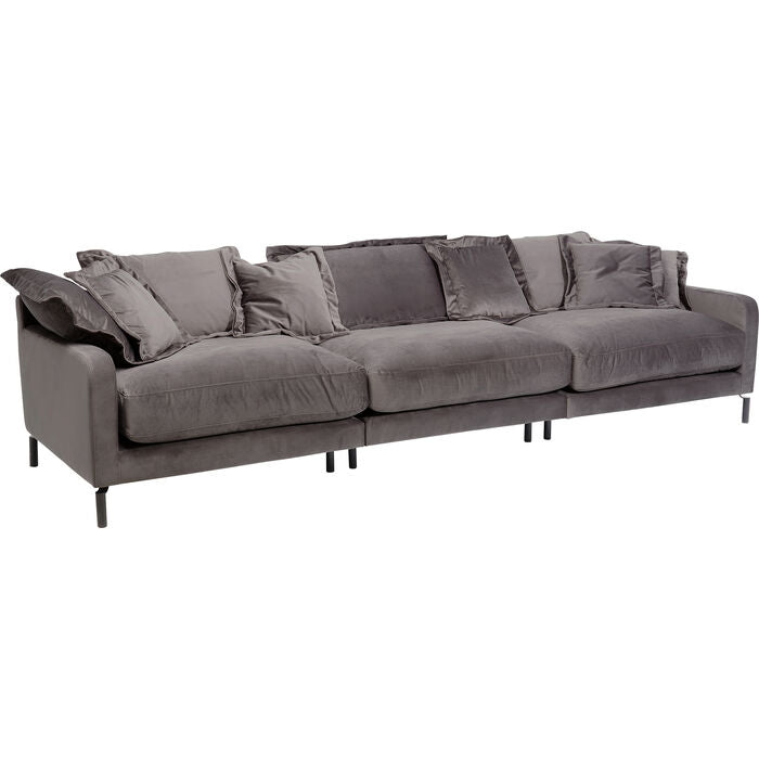 Sitting comfortably on the couch with lots of cosy and very casual cushions in a stylish setting? Definitely! The classic shape of the sofa and the shimmering, velvety upholstery cover give the Lullaby upholstered furniture series a classy, glamorous update. Lullaby is a high-quality upholstery series consisting of two- and three-seater sofas, matching armchairs, extension elements and stools available in royal petrol-blue or warm taupe. Special feature: thanks to the separately available sofa elements, the two-seater and three-seater sofas can be extended according to your wishes.