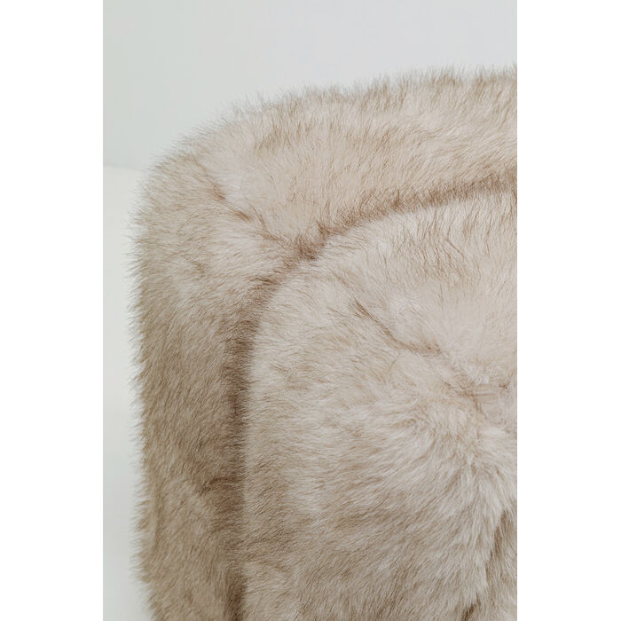 A real feel-good guarantee with style factor: this fluffy stool brings a cozy atmosphere to any home with its soft faux fur cover in soft natural tones. The unusual shape gives the design a lightness and adds playful accents – ideal for brightening up simple rooms. Whether as a comfortable addition to a sofa and armchair, as flexible seating, or as a decorative storage surface, this multi-talented piece shows off its versatile side. The softly upholstered surface combined with elastic springs invites you to linger and combines comfort with character. Perfectly complemented by wooden furniture or accessories in warm earth tones.