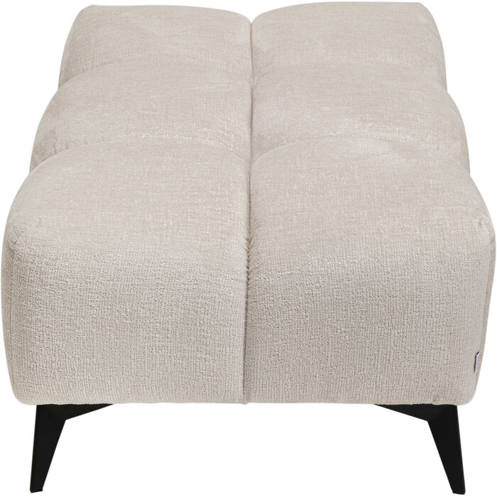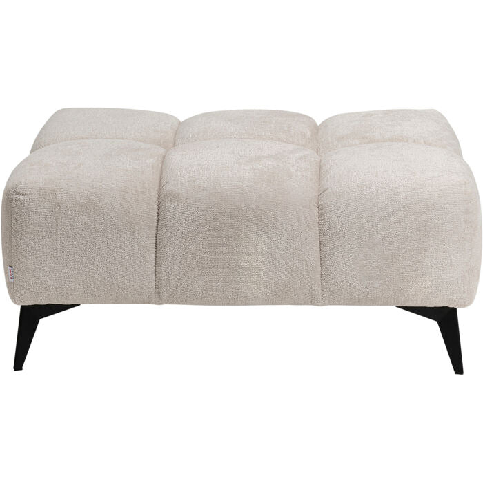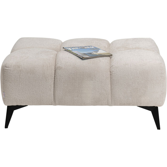 This stool combines stylish elegance with practical versatility. The creamy white cover in a sophisticated velvet look shimmers in different lighting conditions and lends the room a luxurious atmosphere. The simple, black feet add a modern accent and make the stool a flexible all-rounder. Whether as a comfortable footrest, additional seat or decorative accent - this piece of furniture fits perfectly into any interior. Combined with an elegant sofa or in a minimalist setting, the stool becomes a design highlight in the living area that is both functional and visually appealing.