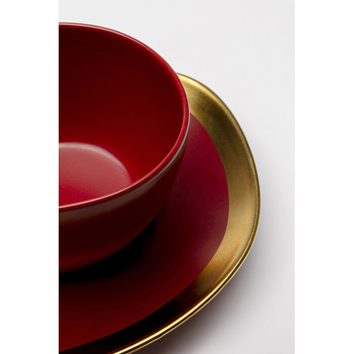 The tableware series Vibrations adds a touch of stylish elegance to any table. The gently curved lines are reminiscent of artistic craftsmanship, while a deep red tone combined with subtle golden accents creates a festive, almost regal atmosphere. Each piece captivates with its individual shape and subtle irregularities, which give it a special charm. The durable workmanship makes the tableware not only a highlight for festive tables, but also a long-lasting companion for everyday use. Arranged with linen napkins, candlelight, and gold-colored cutlery, it creates a luxurious ambience that perfectly combines warm coziness and sophisticated style.