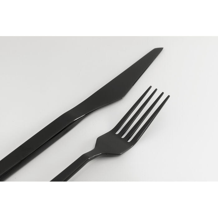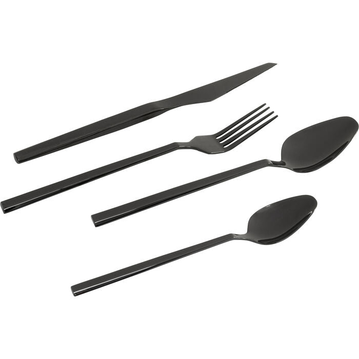 Black elegance in a sleek design: this 16-piece cutlery set made of chrome-plated stainless steel combines modern design with high functionality and timeless sophistication. The shiny surface ensures a stylish appearance on any table, while the ergonomic design guarantees comfortable handling. Whether for everyday dinners or special occasions, this set makes every place setting an eye-catcher. Dishwasher safe for easy care, it also adds a fashionable touch when combined with glass accents, minimalist tableware or colour-coordinated accessories.