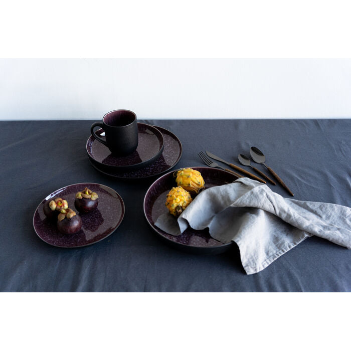 A touch of extravagance for every table setting: the Alissa tableware series delights with a contrasting play of colors of velvety dark red and delicate, irregular speckles, which gives every place setting a touch of individuality. On the outside, a deep black coat with a matt texture surprises and brings modern restraint into play. Each piece is carefully crafted by hand and impresses with its authentic ceramic feel. Ideal for combining with linen napkins, gold-colored cutlery or rustic wooden elements to create a table arrangement with style and character - both for everyday use and for atmospheric dinners with guests.