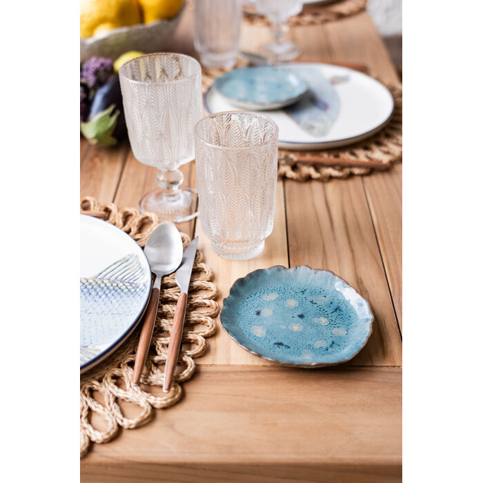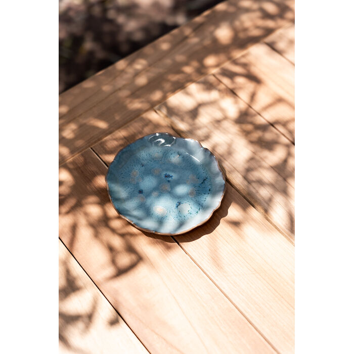 The Mina tableware series enchants with its flowing watercolor patterns in intense blue variations and a sophisticated, glossy finish. Organic shapes and subtle brown accents create a handcrafted look that is reminiscent of gentle ocean waves and lends a maritime freshness to any table. Made from high-quality, glazed ceramic, it combines everyday practicality with aesthetic flair - dishwasher and microwave safe, it stylishly accompanies everything from relaxed meals to special celebratory dinners. The collection looks particularly appealing in combination with natural materials such as linen napkins or wooden accessories, which emphasize the maritime mood and create an inviting atmosphere.