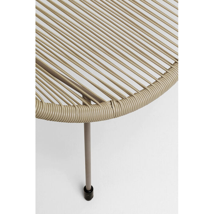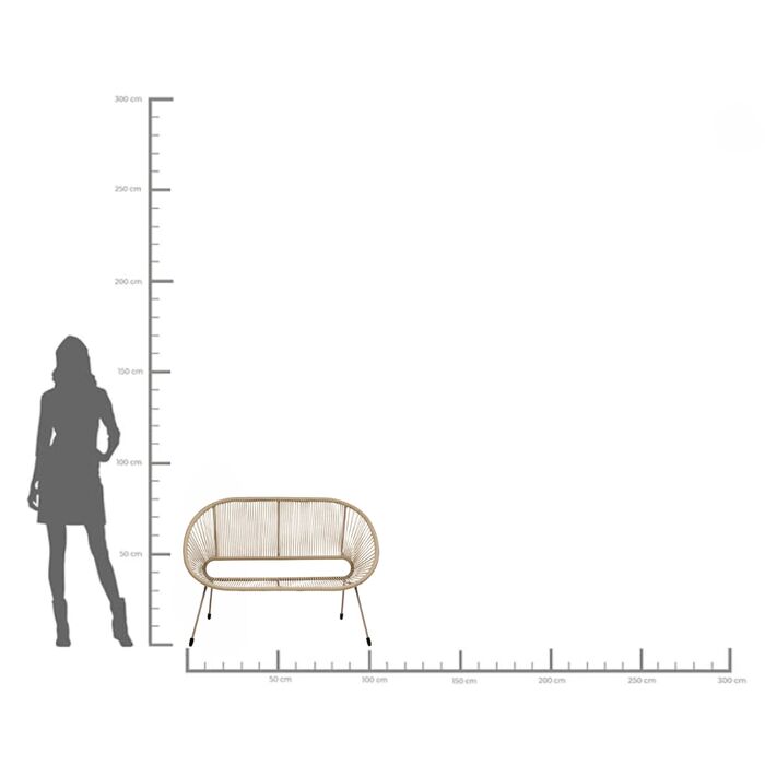 The Mexico chair with a difference! This beautifully designed bench is ideal for both indoor and outdoor use thanks to its durable materials and trendy spaghetti look. The generous seat is made of slightly elastic wicker, making sitting a pleasure. The sturdy construction is made of high-quality steel, which is resistant to mild weather conditions thanks to its powder coating. In addition, the legs have protective caps, so you can also place the furniture in your living room, bedroom, or kitchen. We recommend protecting this designer bench from strong, prolonged UV radiation and constant moisture outdoors by covering it.